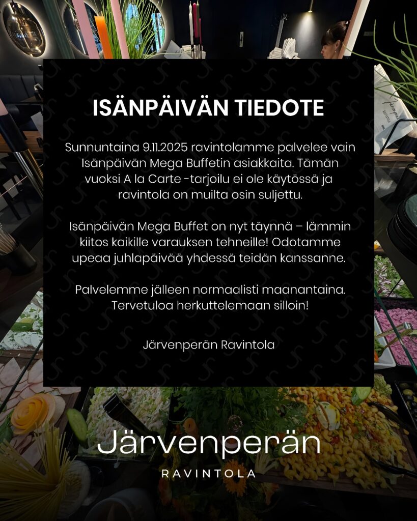 Täältä löydät ajankohtaista tietoa siitä, mitä Järvenperän Ravintolassa tapahtuu.